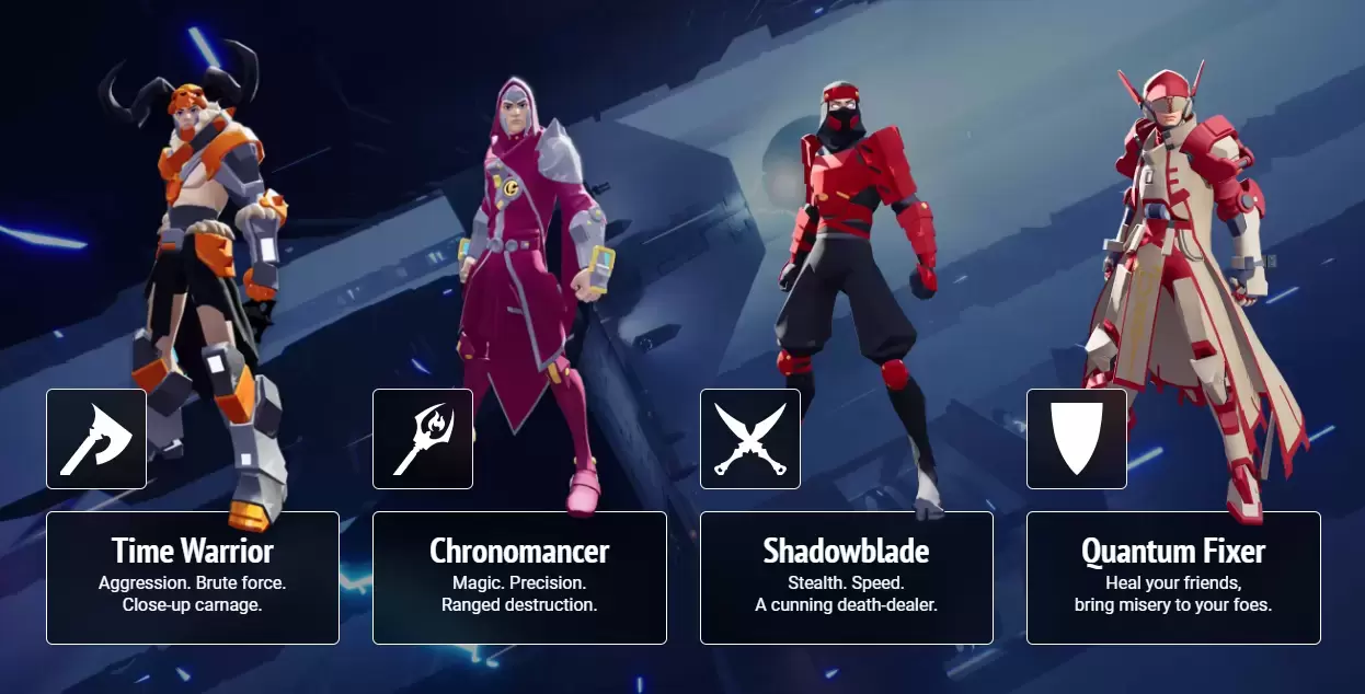 Al principio del juego, los jugadores deben seleccionar entre cuatro clases diferentes: Time Warrior, Chronomancer, Quantum Fixer y Shadowblade. La elección de la clase determina la experiencia de juego, y los "Pocketwatches" permiten cambiar entre clases, proporcionando flexibilidad estratégica y táctica.