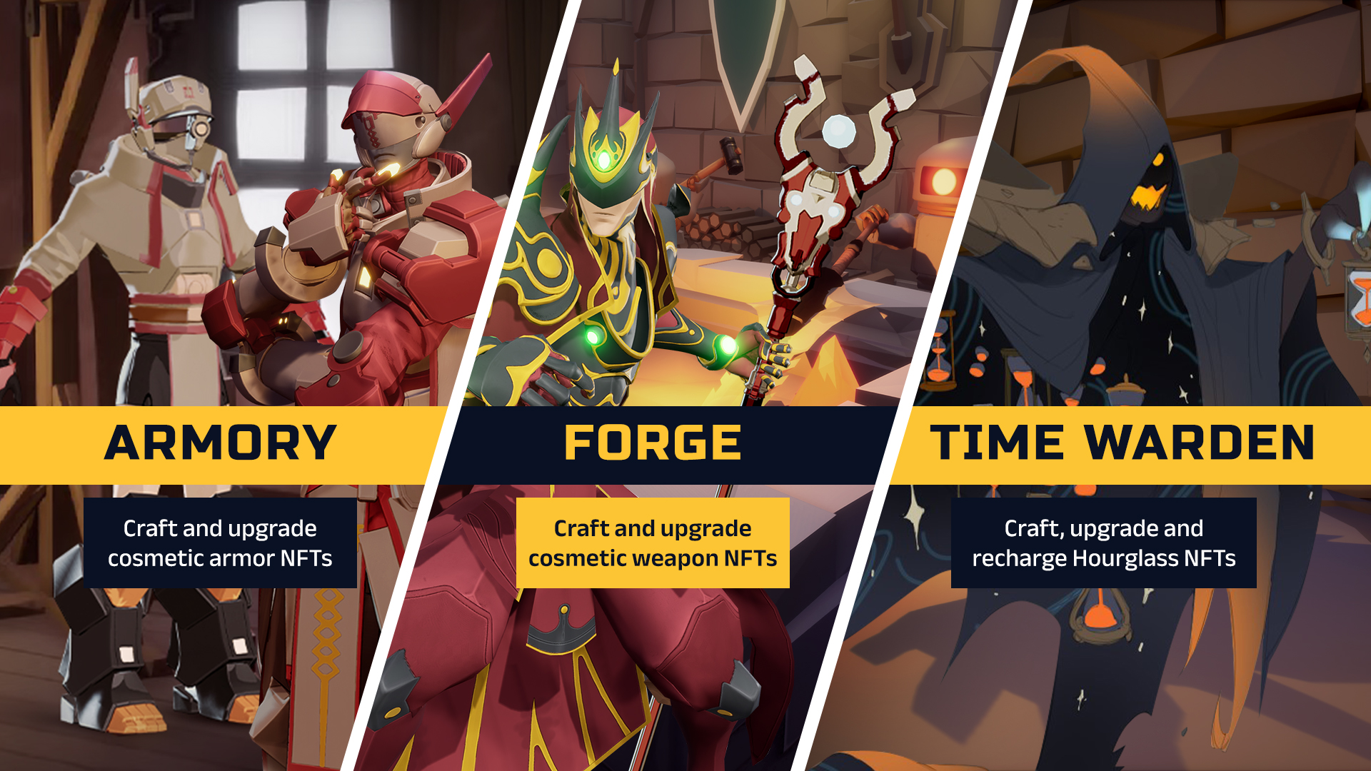 Forges: Permiten a los jugadores mejorar y personalizar sus armas. Armories: Brindan la capacidad de mejorar y personalizar armaduras. Guardianes del Tiempo: Esenciales para la creación y mejora de Hourglasses, un artefacto crucial en la economía del juego.